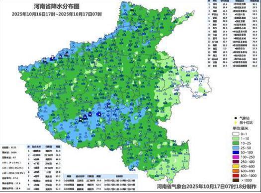 省气象台监测显示,10月16日17时至17日7时,我省大部出现小到中雨,南阳、驻马店北部、平顶山南部、三门峡北部、济源、焦作北部、安阳西部等地部分县(市、区)出现大雨,三门峡、南阳、平顶山等地局部暴雨。降水量位列前三的分别为:南阳市麒麟湖81.0毫米、三门峡市王家后76.9毫米、南阳市安皋68.0毫米。整点最大小时降水量为三门峡市王家后35毫米(10月16日22时至23时)。